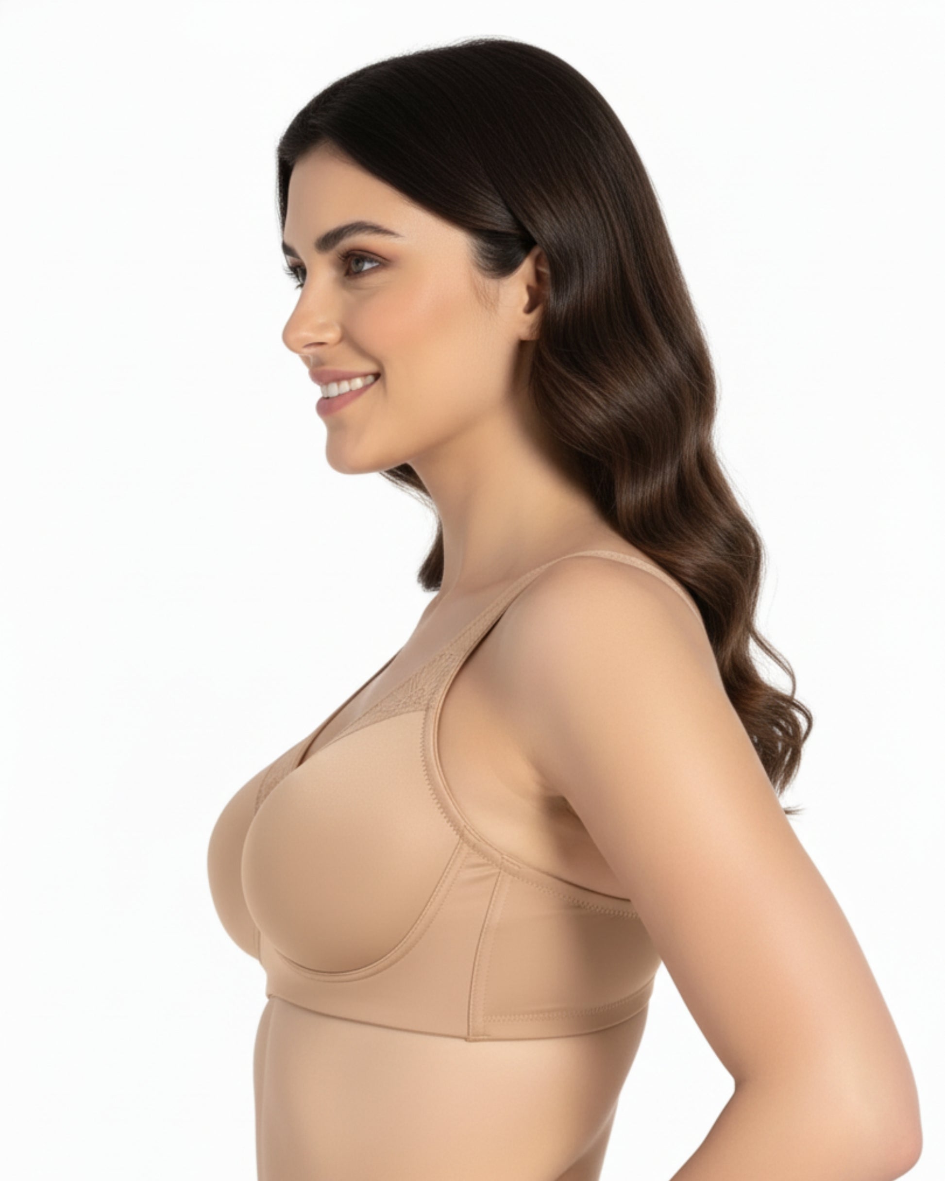 Made with fleece-lined, smooth seamless cups, it ensures full coverage and superior concealment for a clean look under any outfit. The non-padded, non-wired construction gives a natural feel, while broad cushioned straps provide long-lasting comfort. A hint of lace detailing along the neckline adds a feminine, graceful touch — making it your go-to choice for everyday wear.