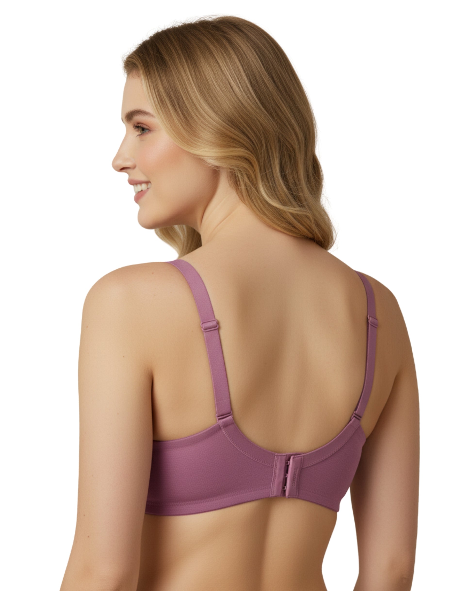 Crafted from premium cotton fabric with a moisture management finish, it wicks away sweat quickly for a dry and fresh feel. The smooth seamless cups provide a clean look under fitted outfits, while the extra full coverage ensures no top spillage. Its wide double-layered wings give side shaping and tag-free comfort, making it a perfect choice for all-day wear.
