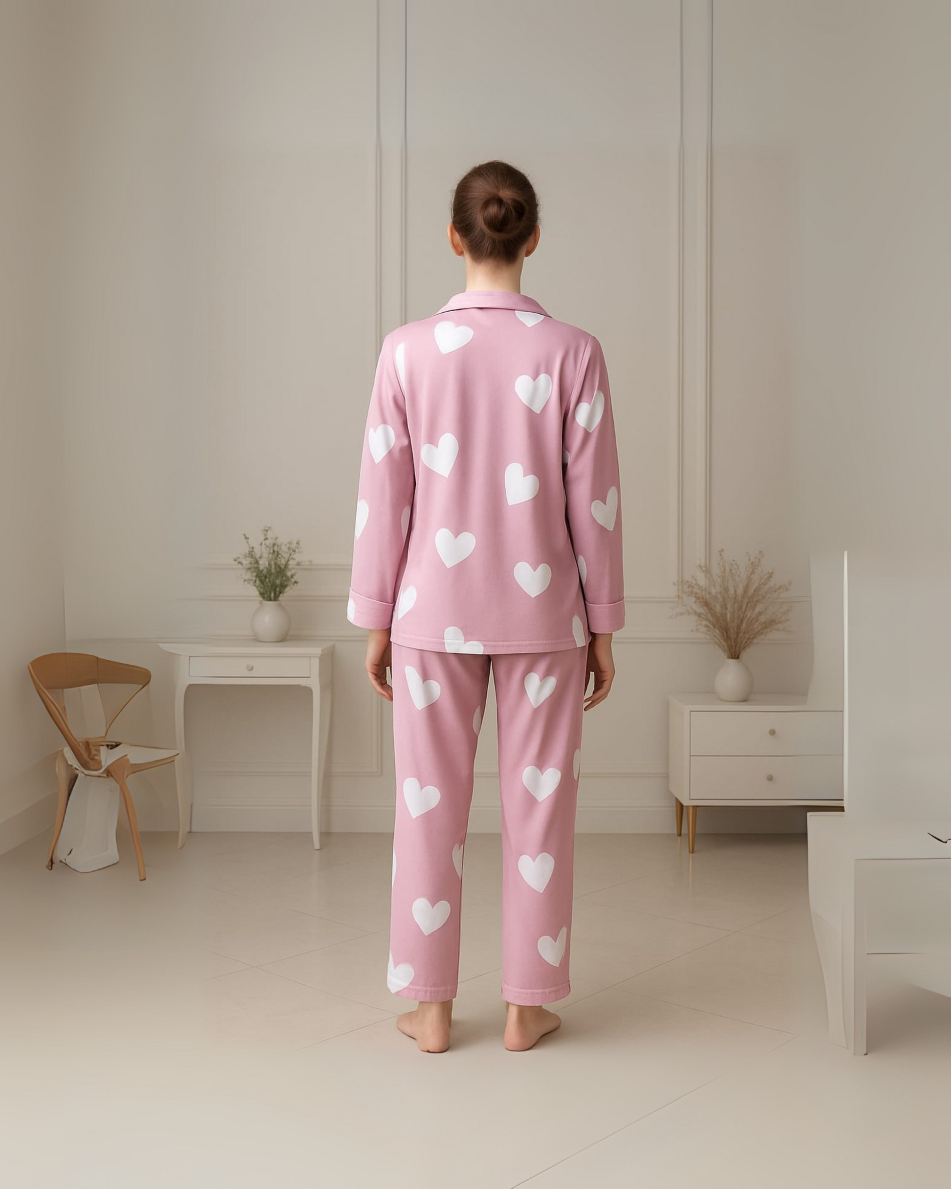 Indulge in luxurious comfort with the Fablush Women’s Front Open Full Sleeves Nightsuit (Style FB37004), crafted from double side velour printed fabric for a soft, plush feel inside and out. Designed with a classic notch collar, full sleeves, and relaxed flared pants, this nightwear set perfectly balances elegance with cozy warmth.