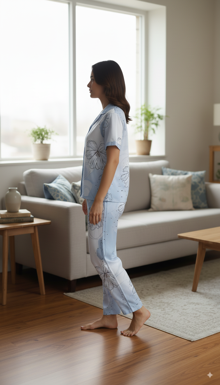 The lightweight Rayon fabric drapes beautifully, ensuring comfort and ease of movement throughout the night. Ideal for both everyday nightwear and lounging at home.