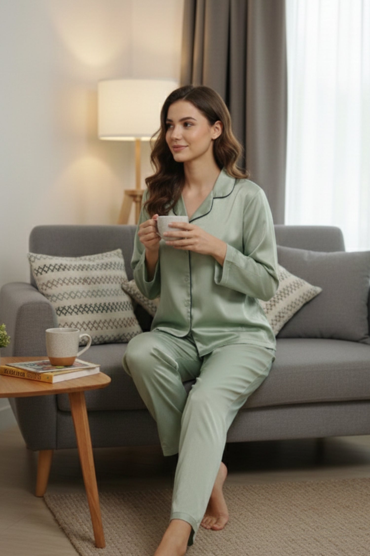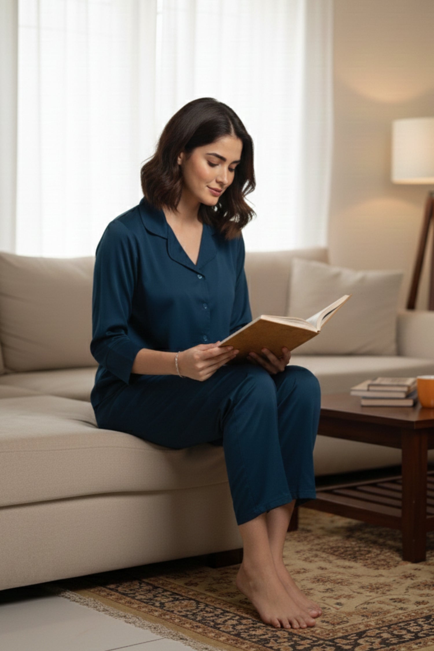 The lustrous satin drape and soft finish make this nightsuit a must-have addition to every bridal trousseau. Whether it’s for your wedding night, honeymoon, or simply indulging in self-care evenings, this bridal nightwear is crafted to make you feel confident, elegant, and beautiful.