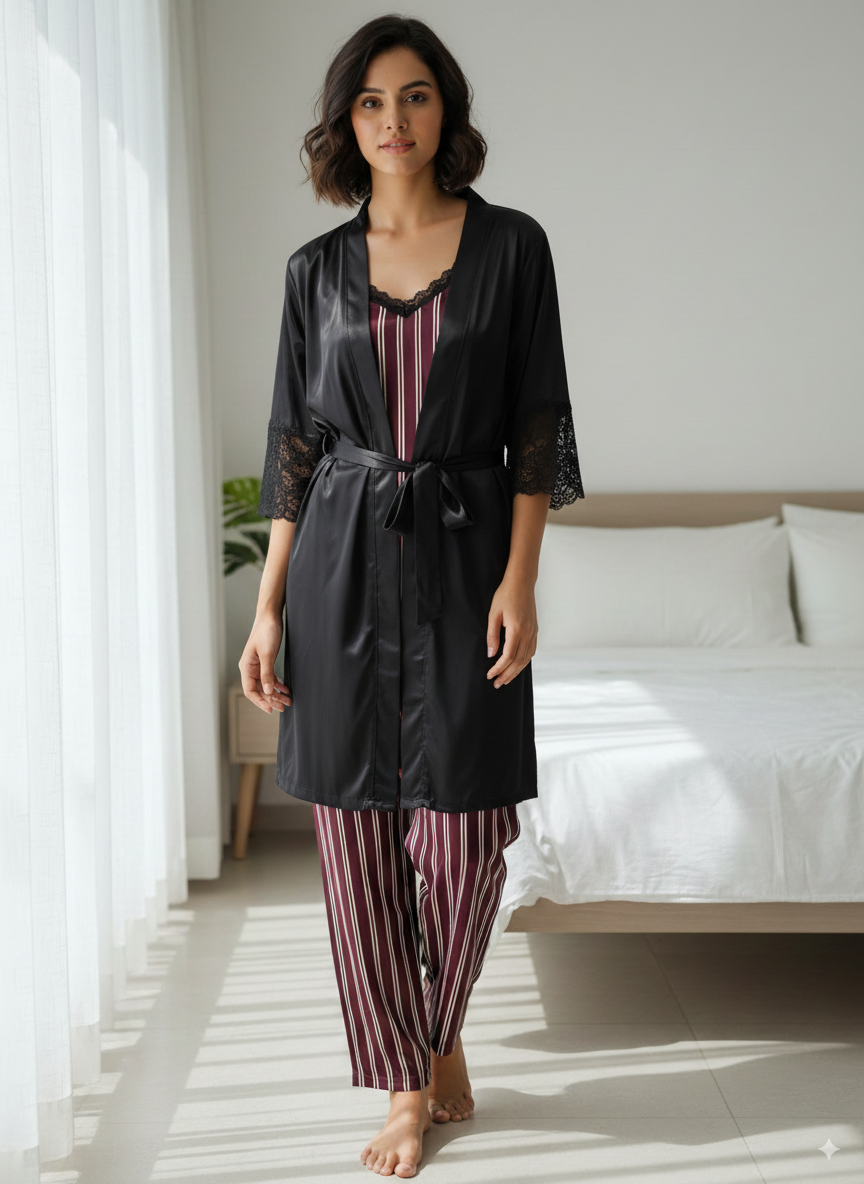 The set includes a short with gown and a short with cami, offering versatile styles that balance comfort with sophisticated bridal charm. Perfect for weddings, trousseau collections, or special occasions, this ensemble ensures elegance and style at every moment.